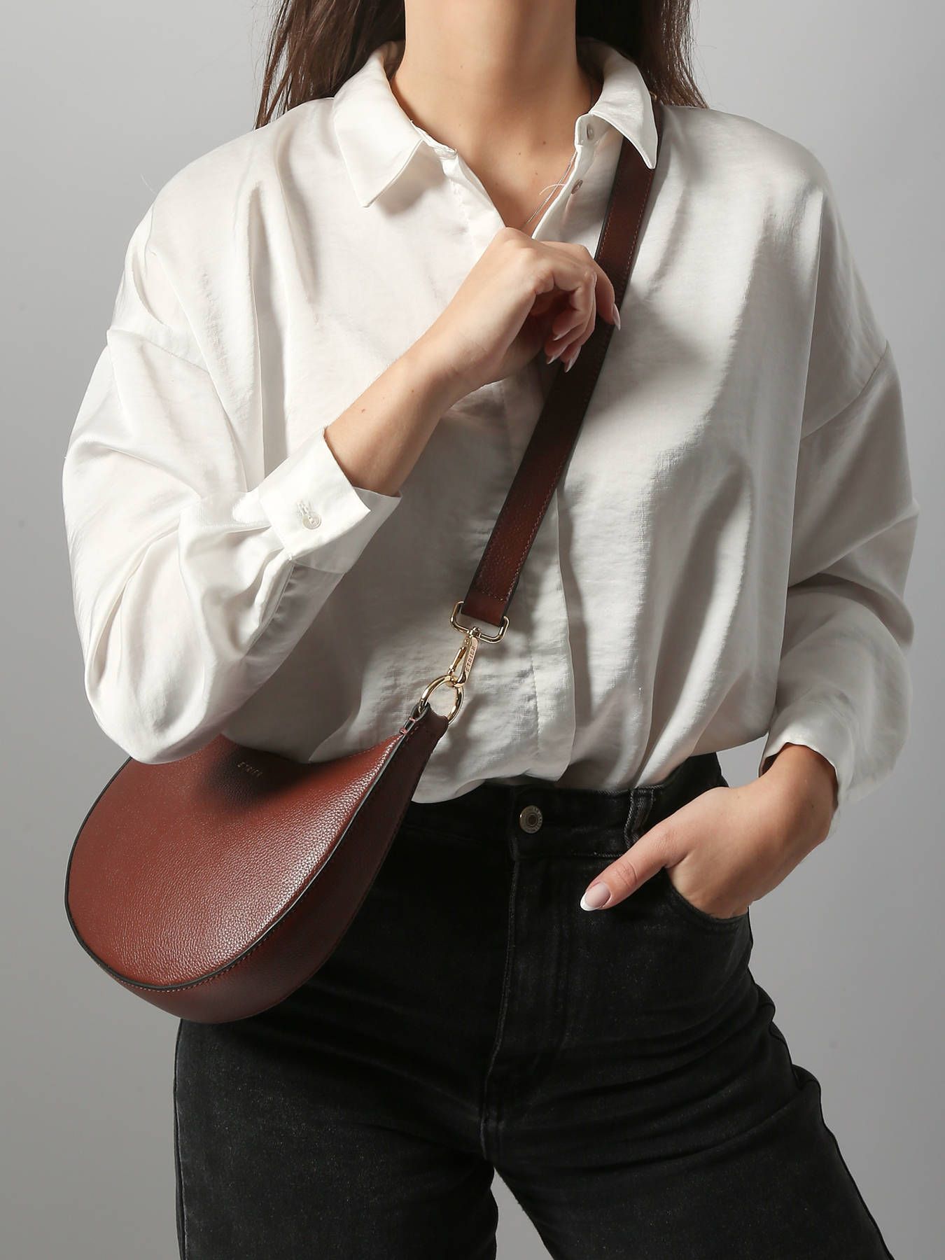 Avec son design en forme de demi-lune, ce sac de la marque ETRIER incarne l'équilibre parfait entre simplicité et élégance. Ce petit format pratique est conçu pour accompagner les femmes modernes dans toutes leurs aventures, tout en reflétant les codes emblématiques de la ligne TRADITION. Les bijoux dorés et l’étrier sur le zip apportent une touche subtile de sophistication, rappelant l’héritage et le savoir-faire d’ETRIER. À l’intérieur, ce sac offre une poche simple et une poche zippée, idéales pour organiser vos essentiels avec style et efficacité. Polyvalent et confortable, il est doté d’une bandoulière amovible et réglable, vous permettant de le porter en travers ou à l’épaule selon vos envies et vos besoins. Compact mais fonctionnel, ce sac bandoulière s’impose comme un incontournable pour un look soigné et minimaliste. Adoptez le sac demi-lune TRADITION par ETRIER et affirmez votre style avec une pièce qui conjugue modernité, intemporalité et praticité.